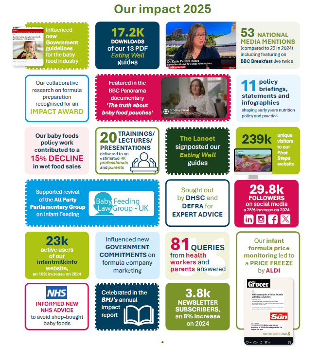 To hear how First Steps Nutrition Trust’s followers rate the relevance and accessibility of our resources and communications, you can read the results of our 2023 evaluation here.