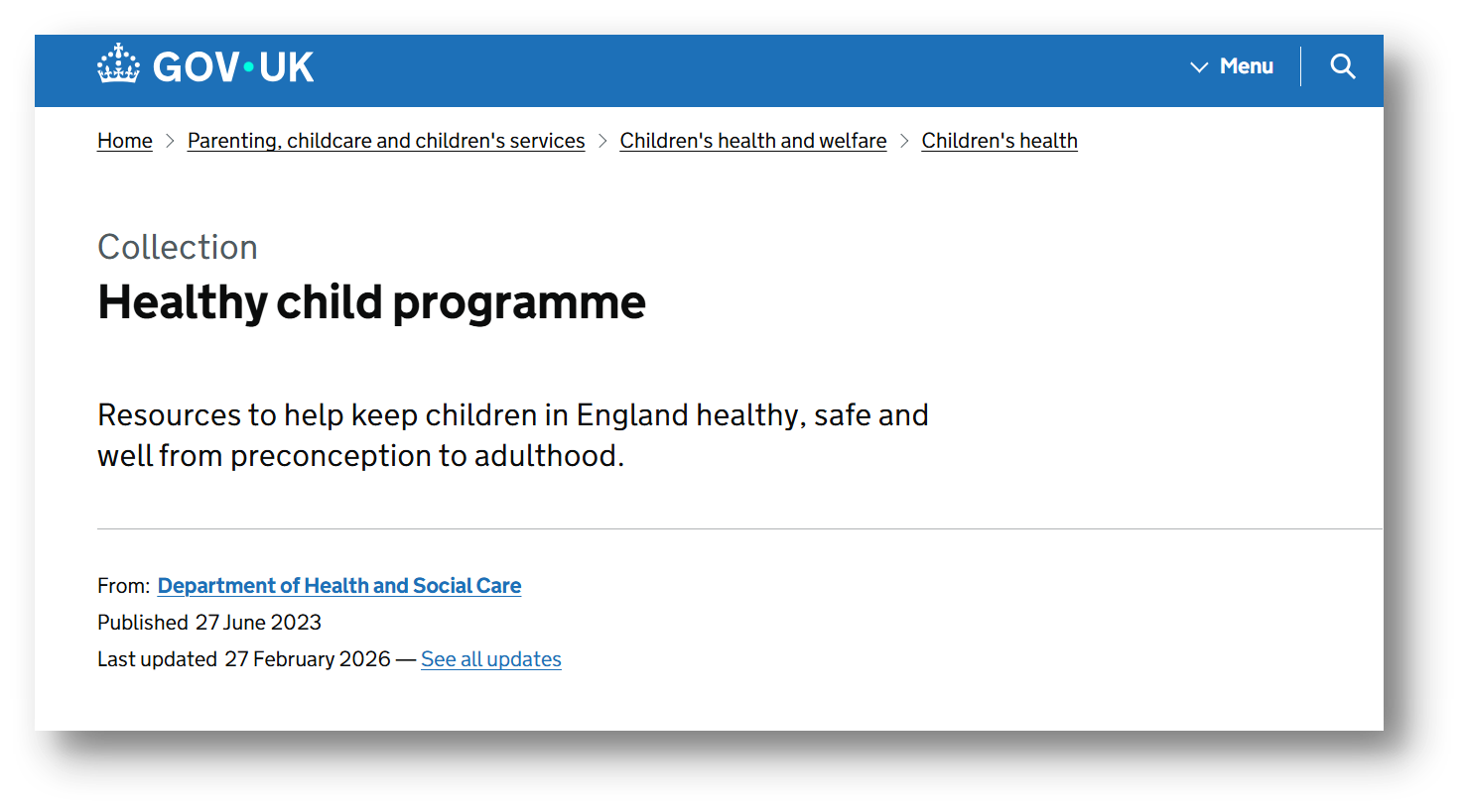 On February 6th, the Department for Health and Social Care published the Healthy Child Programme national framework for improving the health and wellbeing of babies and children and young people from birth and aged up to 19-25 years old in England. It sets out evidence-based approaches to prevention, early intervention and family support – supporting the government’s ambition of raising the healthiest ever generation of children. It comprises delivery guidance for public health nursing teams for and their provider organisations (divided in to part 1, principles, part 2 for health visiting (0-5s), and part 3 for school nursing (5-19s)), commissioning guidance and a high-impact area framework (again broken down in to sections, one of which is for health visiting and 0-5s) which translates the principles in to actionable priorities.