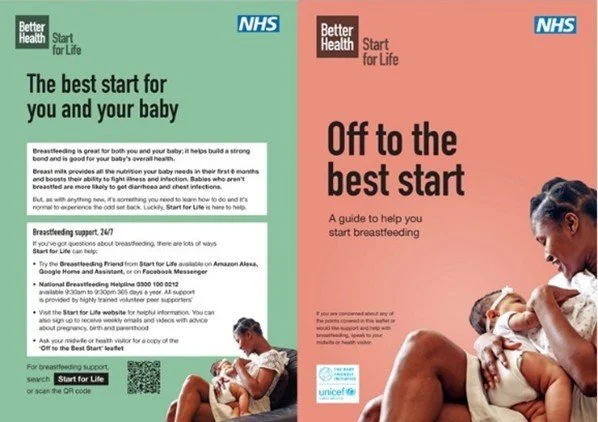 Various breastfeeding guides, wallet cards, posters, social media creatives for both breastfeeding and pregnancy, and the 'easy read' leaflet created in collaboration with UNICEF. These can be downloaded and ordered here.