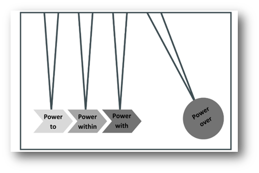 Figure 4: A power continuum, based on the stylised idea of gaining momentum to displace an object. Power framework adapted from Gaventa