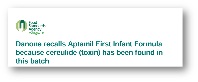 24th of January Danone recalls Aptamil First Infant Formula because cereulide (toxin) has been found in this batch | Food Standards Agency