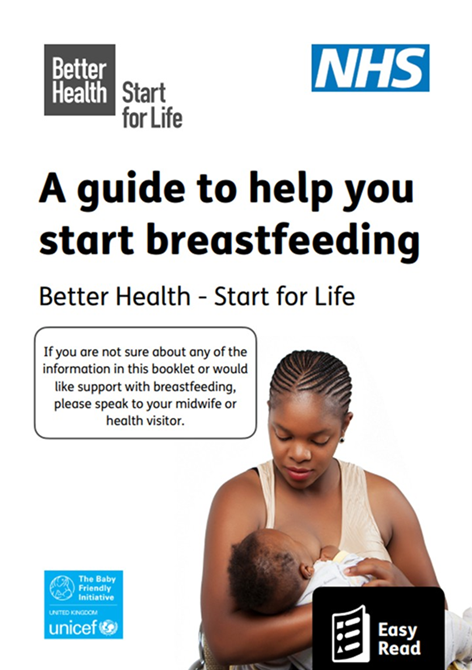 The easy-read 'A guide to help you start breastfeeding' leaflet, created in collaboration with UNICEF, provides mums and parents with key information about breastfeeding. This resource is designed to support audiences with low literacy levels or where English is not a first language. This can be downloaded here.